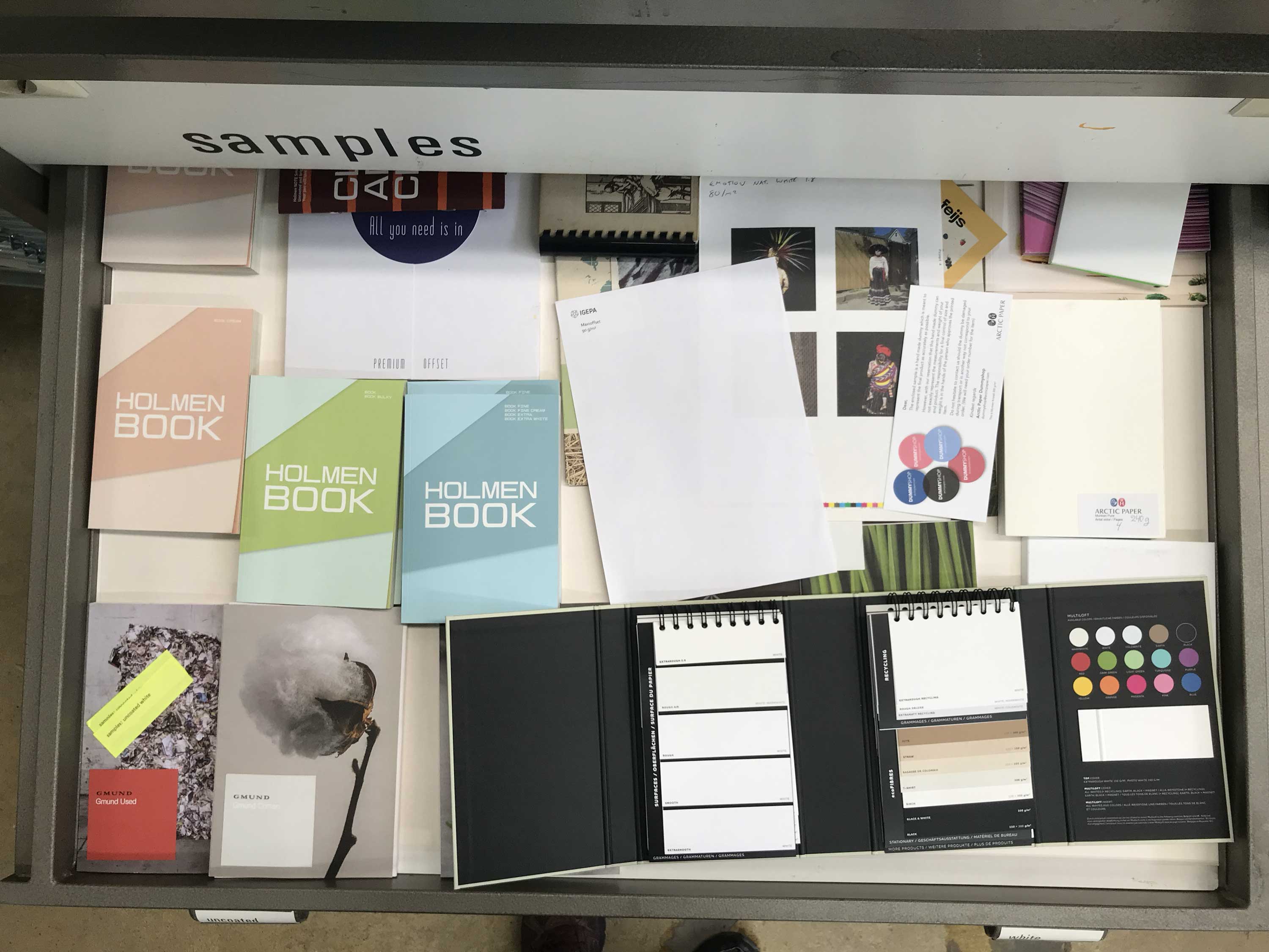 For most of the papers listed I have been collecting samples and organising them into drawers in the Rijksakademie Print Workshop.
